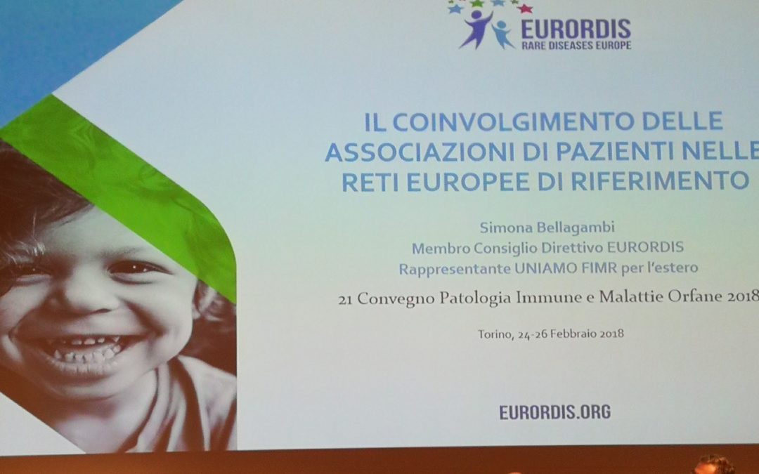 Negli scorsi 25 e 26 gennaio si è svolto a Torino il Convegno “Patologia immune e malattie orfane 2018”, organizzato dal CMID (Centro di Ricerche di Immunopatologia e Documentazione sulle Malattie Rare, Coordinamento Malattie Rare Piemonte e Valle d’Aosta). Oltre ai molteplici aspetti medici, sono stati presentati le ERN (European Reference Networks – Reti di Riferimento Europe) sulle patologie rare nelle quali i pazienti (e le loro associazioni) hanno un ruolo fondamentale. Tale importanza è stata ribadita anche nell’intervento di Eurordis.