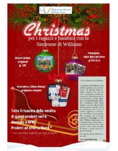Come di consueto, il ricavato della raccolta fondi di Natale andrà a coprire i costi per progetti per famiglie e ragazzi con Sindrome di Williams, oltre che per sostenere la struttura dell’Associazione.