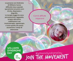 In occasione della Giornata Internazionale della Sindrome di Williams, 20 maggio, vogliamo raccontare alcune delle storie dei nostri ragazzi e delle loro famiglie.