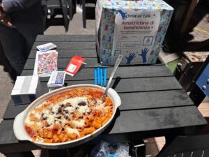 Grazie ai nostri tre produttori della raccolta di Natale, che hanno inviato o portato campioni per poter far testare e toccare con mano la qualità dei loro prodotti. Quindi Dolcetti di Modica, Panpapato di Ferrara e bracciali e collane di BluKapri: siamo anche riusciti a fare un piccolo banchino e vendere i prodotti alle altre persone che soggiornavano in albergo.